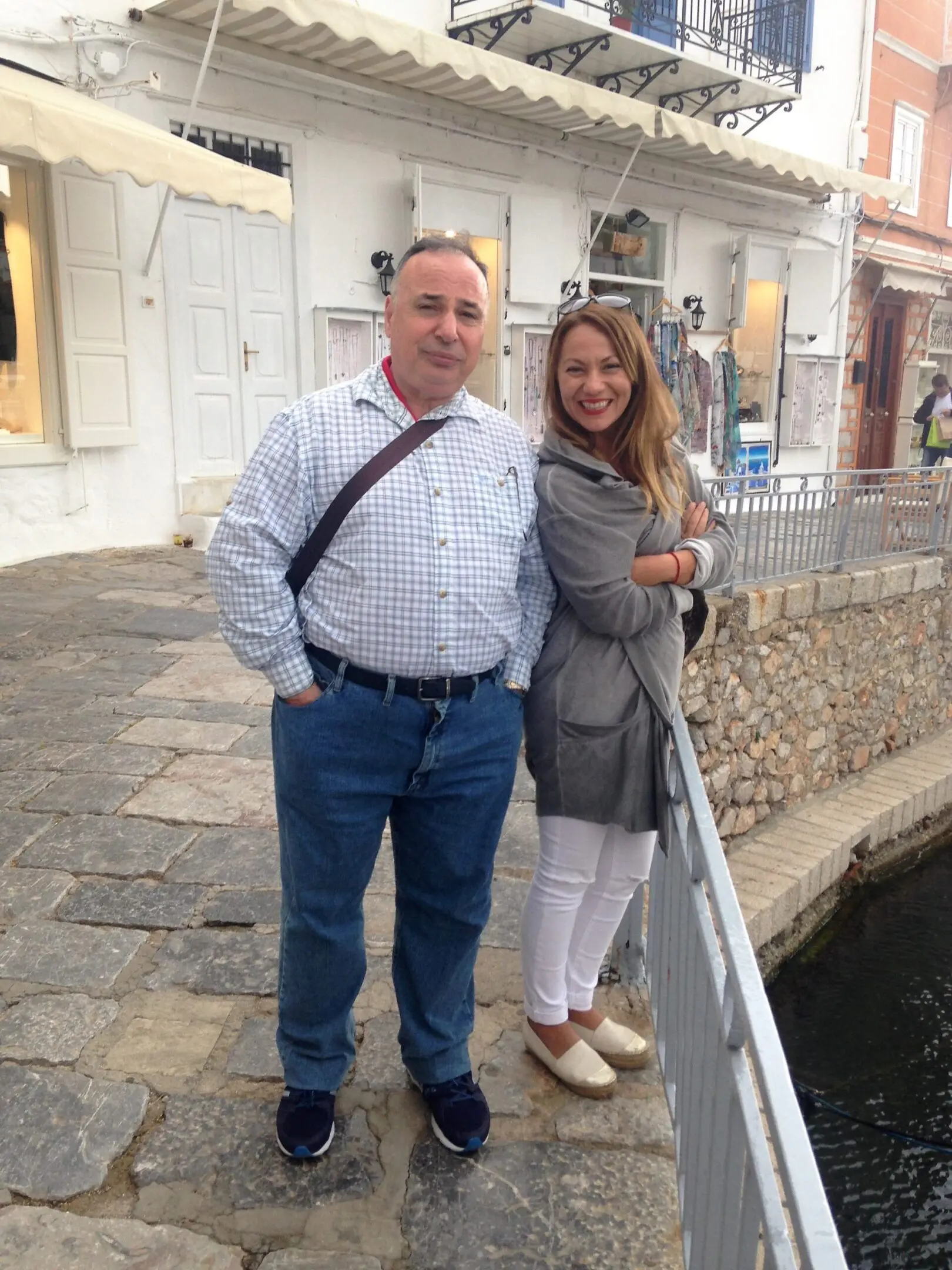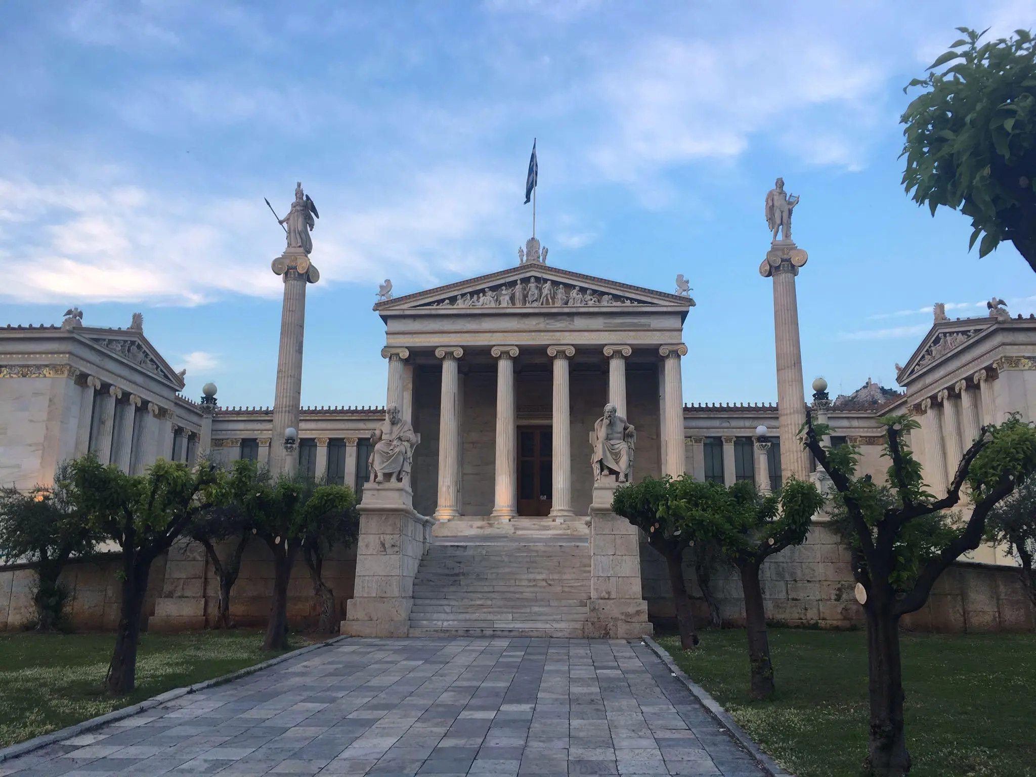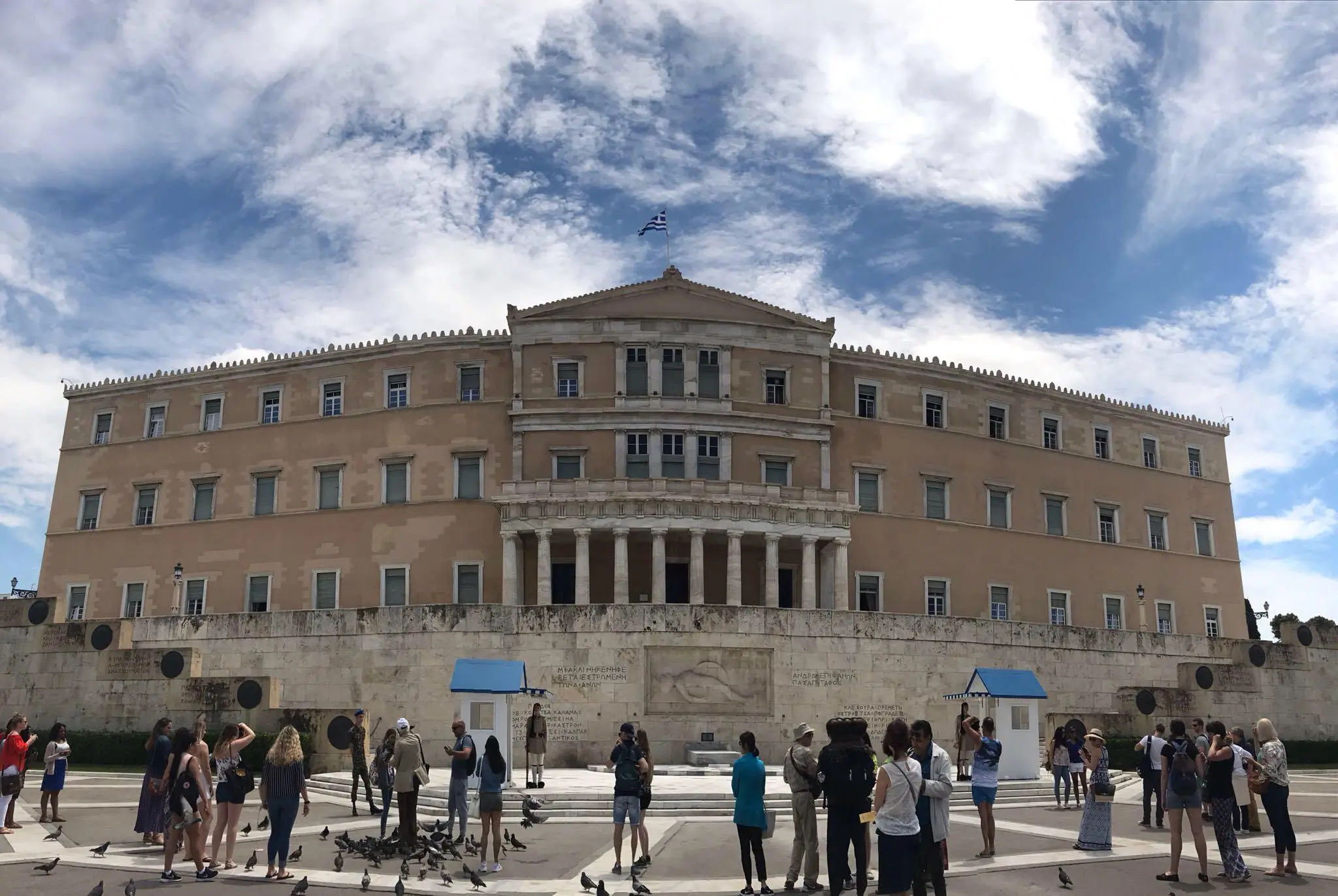 Greek flag waving over a historic site with visitors. A hand holding purple flowers near ancient temple ruins under cloudy sky. Old wooden cart with large spoked wheels. A group of people seated in a modern conference room, attentively listening. A group of people posing in a conference room with yellow chairs. Group in colorful traditional costumes posing indoors. Group in traditional cultural costumes posing on stairs. A group of people in colorful traditional costumes posing for a photo. A group of people in traditional costumes pose playfully indoors. Crowd gathered outside the Hellenic Parliament building in Athens under a partly cloudy sky. Group posing joyfully in front of ancient Greek ruins. Ancient Greek temple with tall columns and statues under a cloudy sky. Ancient-style museum building with statues and columns under a blue sky. Ancient ruins with stone columns under a partly cloudy sky and visitors exploring. Ancient stone columns stand against a cloudy sky in a historic ruin. A tattoo of Greek word Five women posing happily by a marina with boats in the background. Colorful framed artworks and souvenirs displayed on a blue wall. A quaint harbor passage framed by stone buildings and boats under a clear sky. Two fishing boats docked closely in a marina. A joyful group of young women posing together outdoors near a waterfront. A man and woman standing together near a water canal in a town. Woman smiling and posing with a horse outdoors. A couple standing together in a narrow cobblestone street with white walls. Old cannon displayed between two benches by the seaside. Stone pathway leading to a marina with boats and yachts under cloudy skies. Two birds perched on a ledge against a stone wall background. Ancient Greek temple ruins with statues under a clear sky. The Erechtheion temple on the Acropolis with Caryatids on the porch.