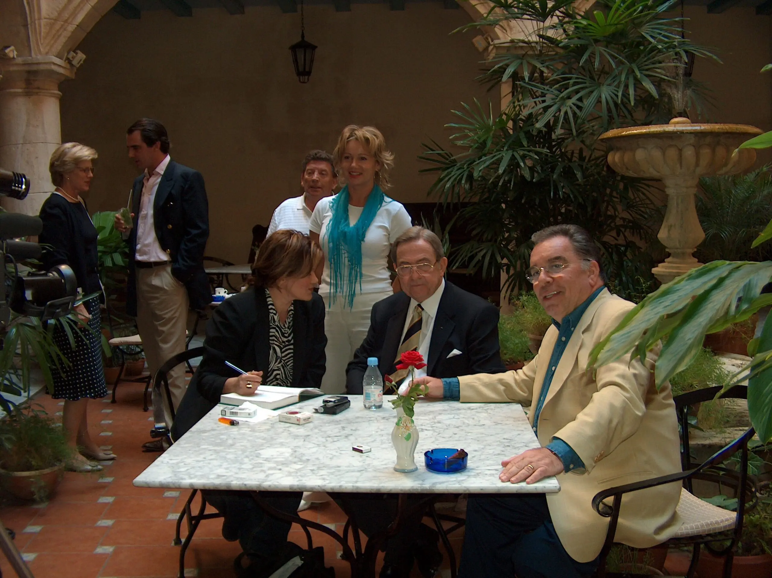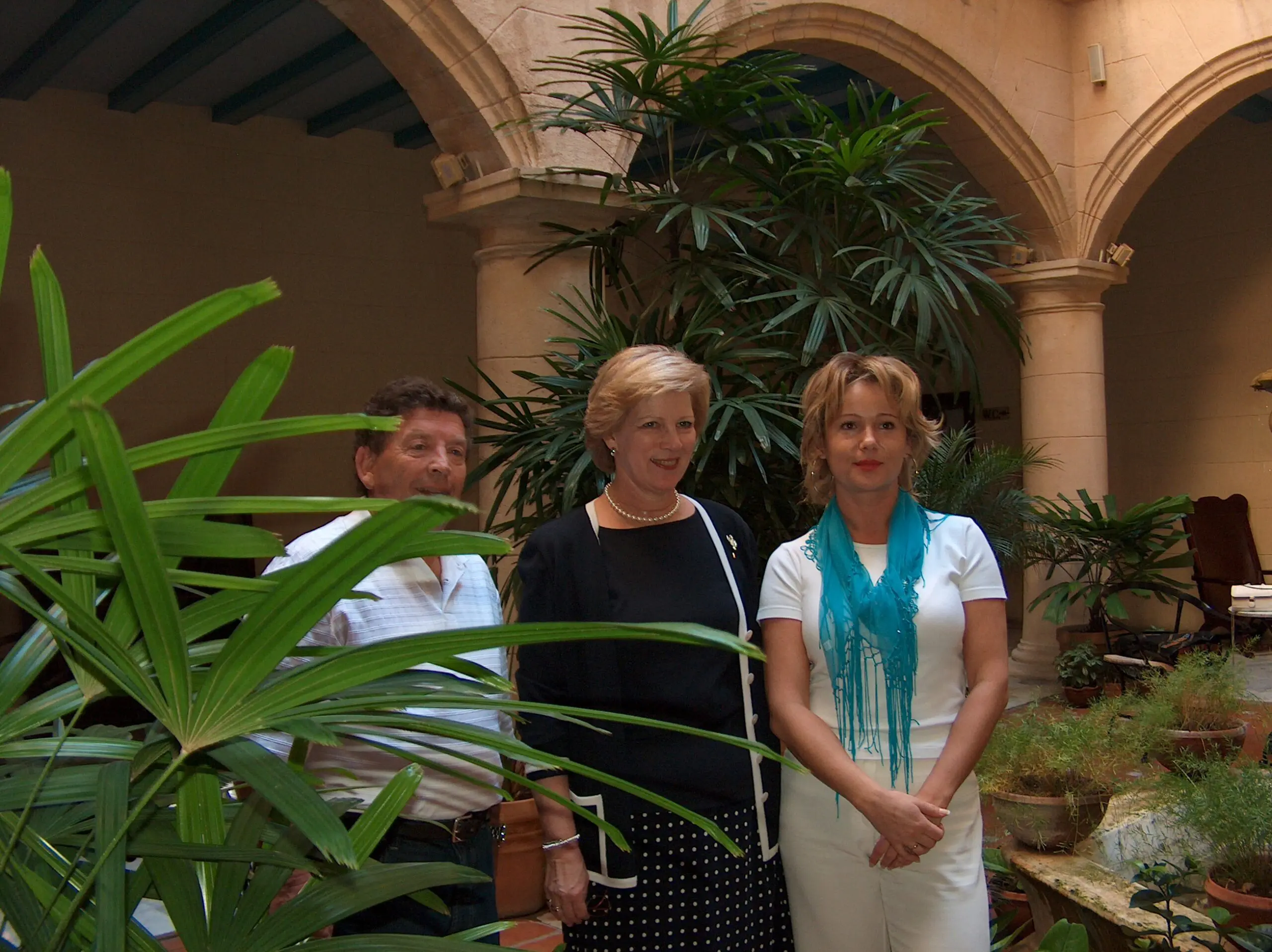 Monument with a statue of a horse and rider against a city skyline and blue sky. Calm river under a partly cloudy sky with trees along the bank. Equestrian statue atop a tall column against a clear blue sky. Palm trees on a sandy beach with ocean waves under a blue sky. Palm trees casting shadows on a sunny beach with ocean waves. Sunny tropical beach with palm trees and clear blue skies. Palm tree fronds sway over a sandy beach with waves crashing in the ocean. Palm trees sway on a sunny beach with blue skies and gentle waves. Statue of a warrior holding a spear against a blue sky. Statue of a bearded man holding a trident against a clear blue sky. Statue of a figure holding a spear near a waterfront under a clear blue sky. Large crowd gathered outside a historic building, many dressed formally. Crowd gathered outside a church during a sunny day. A large crowd of people holding papers in front of a building. Group of people inside a historic building with a large painting. Two professionally dressed individuals posing for a photo indoors. A group of people dressed formally, gathered near a camera setup indoors. Three women standing in a courtyard with lush plants and arches. People socializing in a cozy outdoor courtyard with arches and plants. Group of people socializing at an outdoor cafe with drinks and conversation. Three people sitting at an outdoor café table enjoying drinks and conversation. A woman stands near a medieval-themed fireplace with baskets of fruits and vegetables. Three men posing on a sandy beach with palm trees and ocean in the background. A group of six people enjoying coffee outdoors at a glass table under a tree. Two women smiling and sitting close together indoors. Two men posing for a photo inside an airplane cabin. Four people inside an airplane cockpit, smiling and posing for a photo. People conversing at an outdoor cafe table under an archway.