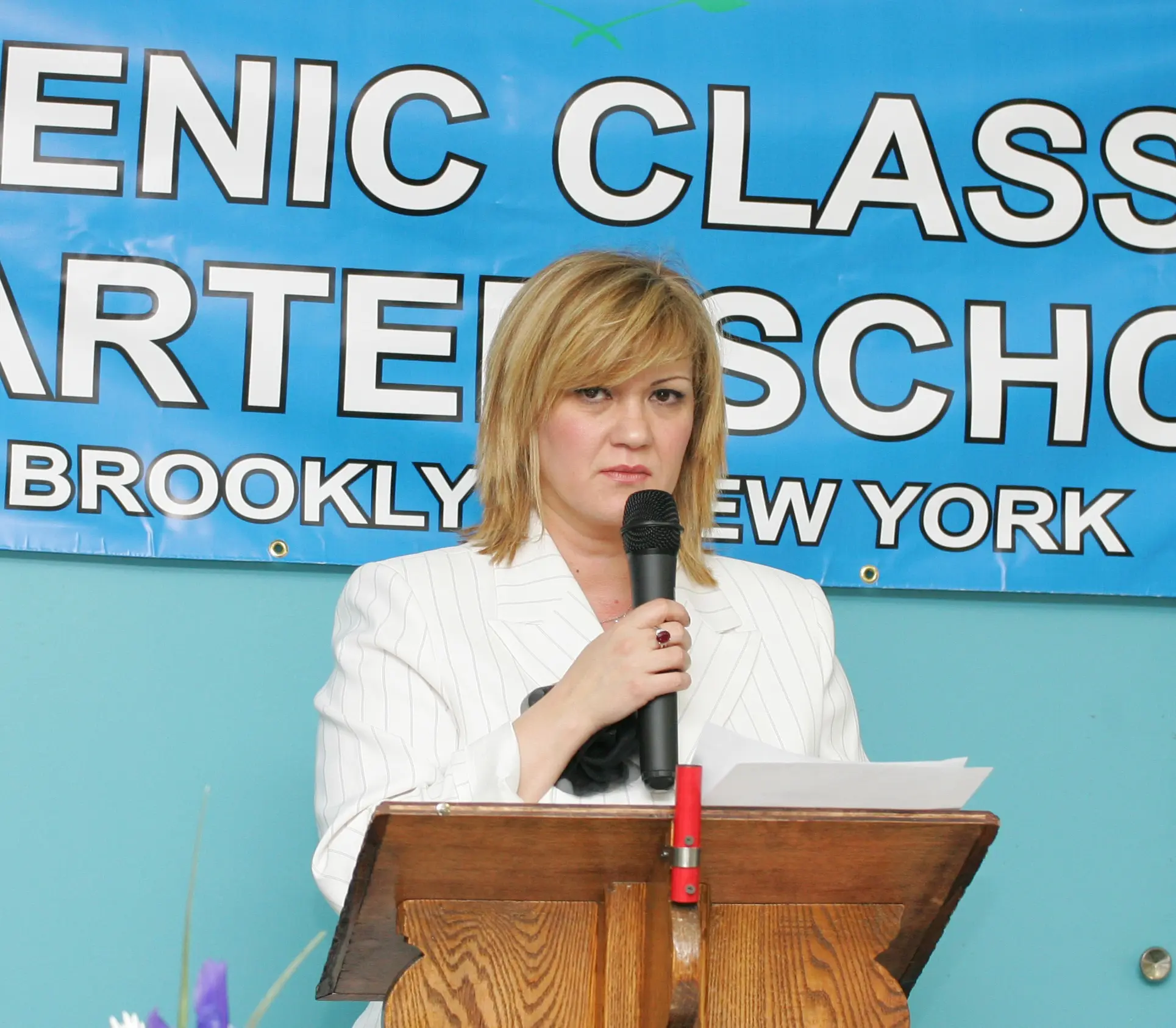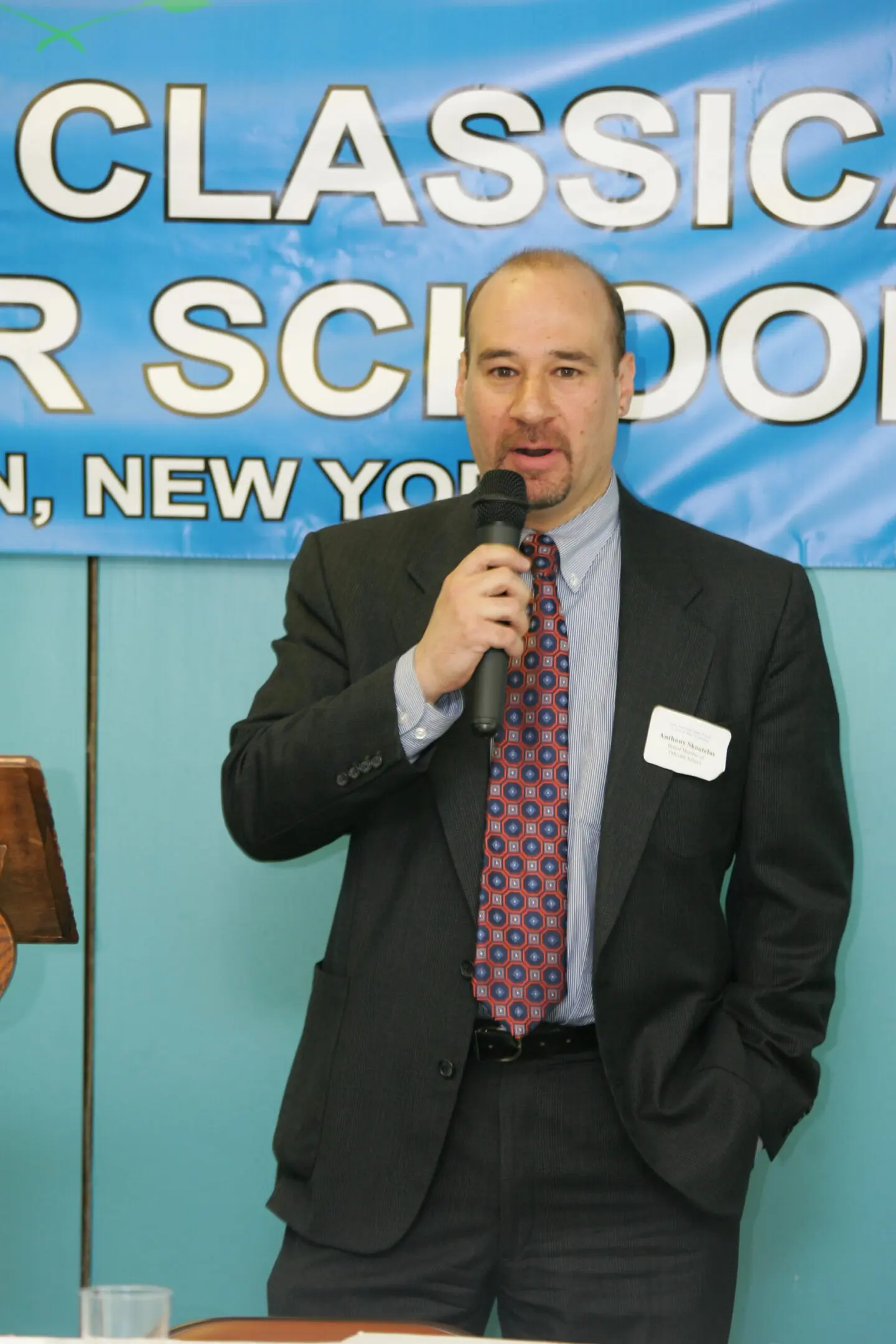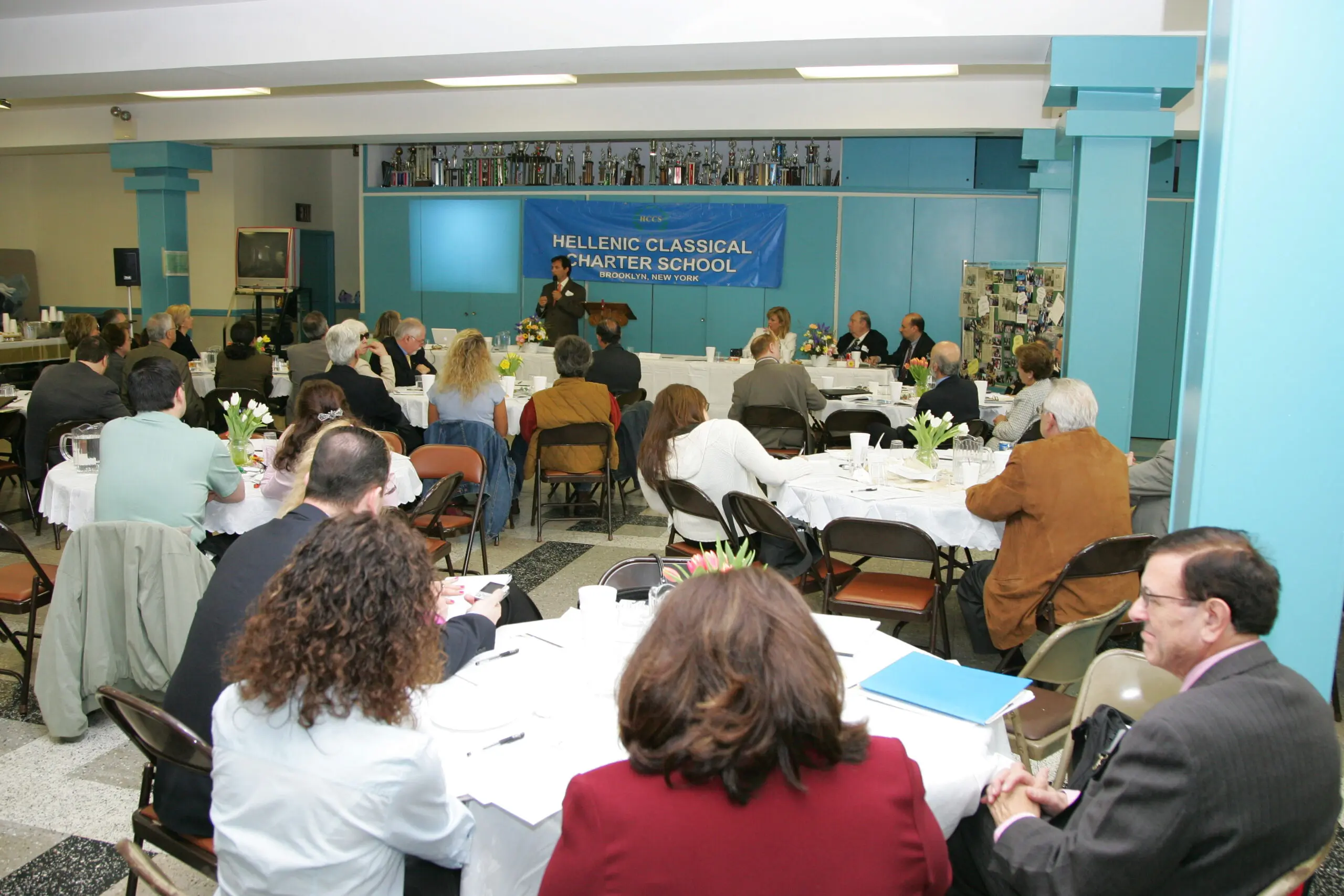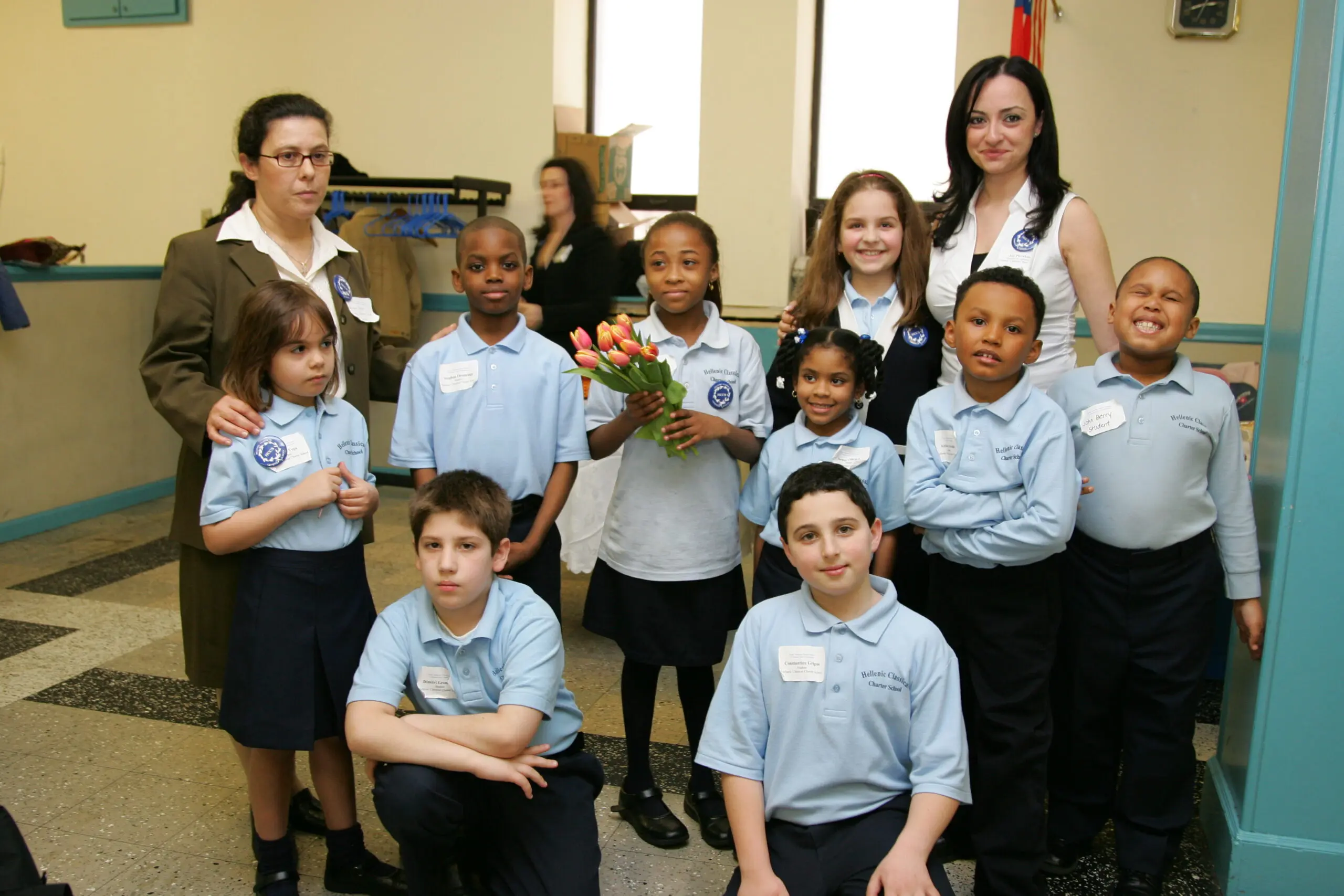 A man and woman in a serious conversation at a formal event. Portrait of an older man in a suit with a striped tie. Professional man in a suit and tie at an indoor event. Elderly man with white hair and mustache deep in thought. Woman speaking into a microphone at an event. Woman with sunglasses and bouquet smiling with a young girl in uniform. Two students stand outside The Fellers Classical Charter School building. Business meeting with presentations and discussions in a conference room. Man speaking at Hellenic Classical Charter School event in New York. Two individuals seated at a long table with a blue banner behind them. Thoughtful woman in white suit sitting at a table with a camera and pitcher. An elderly man speaking into a microphone at a formal event. A thoughtful man in a beige suit and patterned tie. A young girl with braided hair smiles gently. A young girl smiling warmly in a white polo shirt. Three smiling children posing together at a table. Group photo of teachers and officials at the Hellenic Classical Charter School event with trophies. Man speaking at a podium in front of a Hellenic Classical Charter Schools banner. An older man in a suit speaking at a podium with a microphone. A man in a suit speaking into a microphone at an event. A woman in a white blazer attentively listens, resting her chin on her hand. A man in glasses and a suit smiling gently. Woman speaking at a wooden podium with a microphone against a blue backdrop. People gathered at a formal event at Hellenic Classical Charter School. Group of children in school uniforms holding plants indoors. Man speaking at a podium during an event. Woman speaking at a podium in front of a school banner. Group photo of children and adults at a classical music school event. Speakers at the Hellenic Classical Charter School event in Brooklyn, NY. A man and woman in formal attire sitting closely together at a table. Group photo of children and adults at a classical studies event. A woman speaking into a microphone at an event. Elderly man in a suit stands in a colorful classroom.