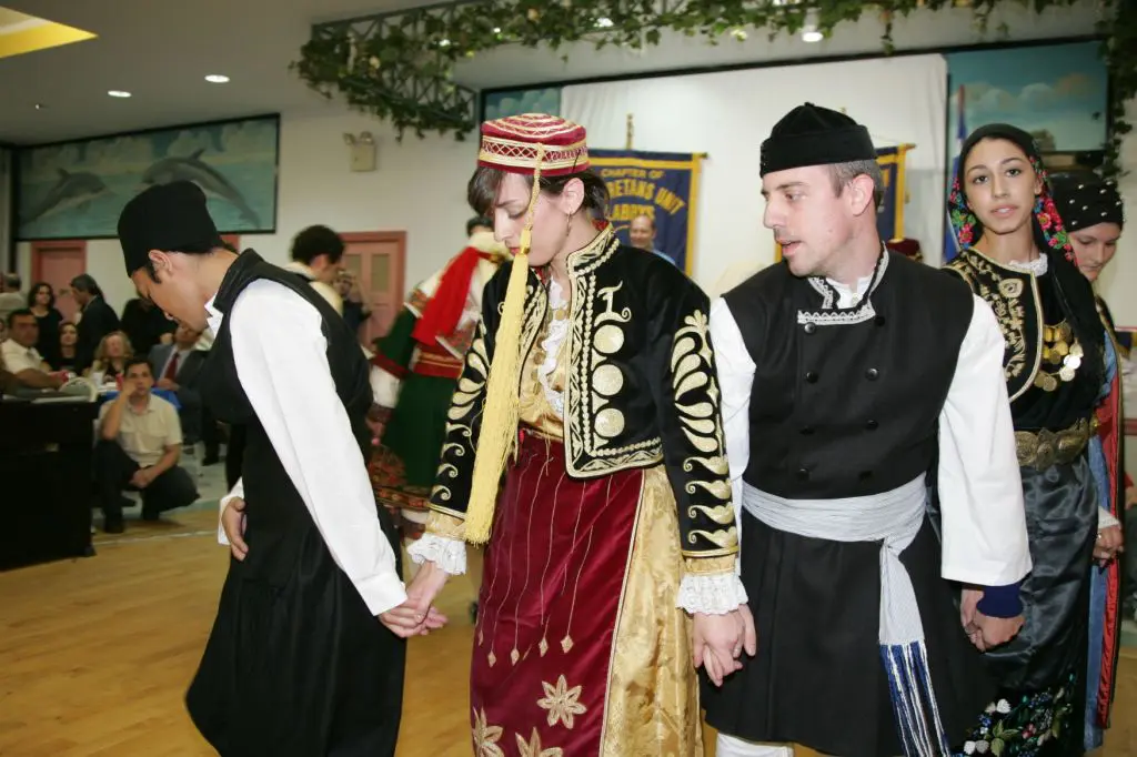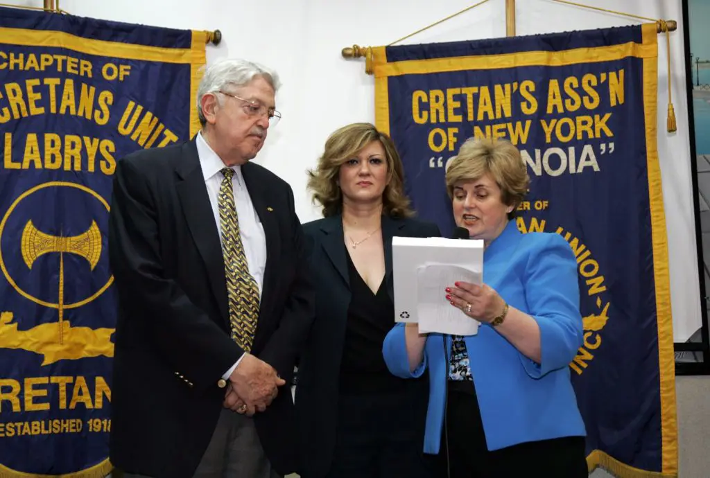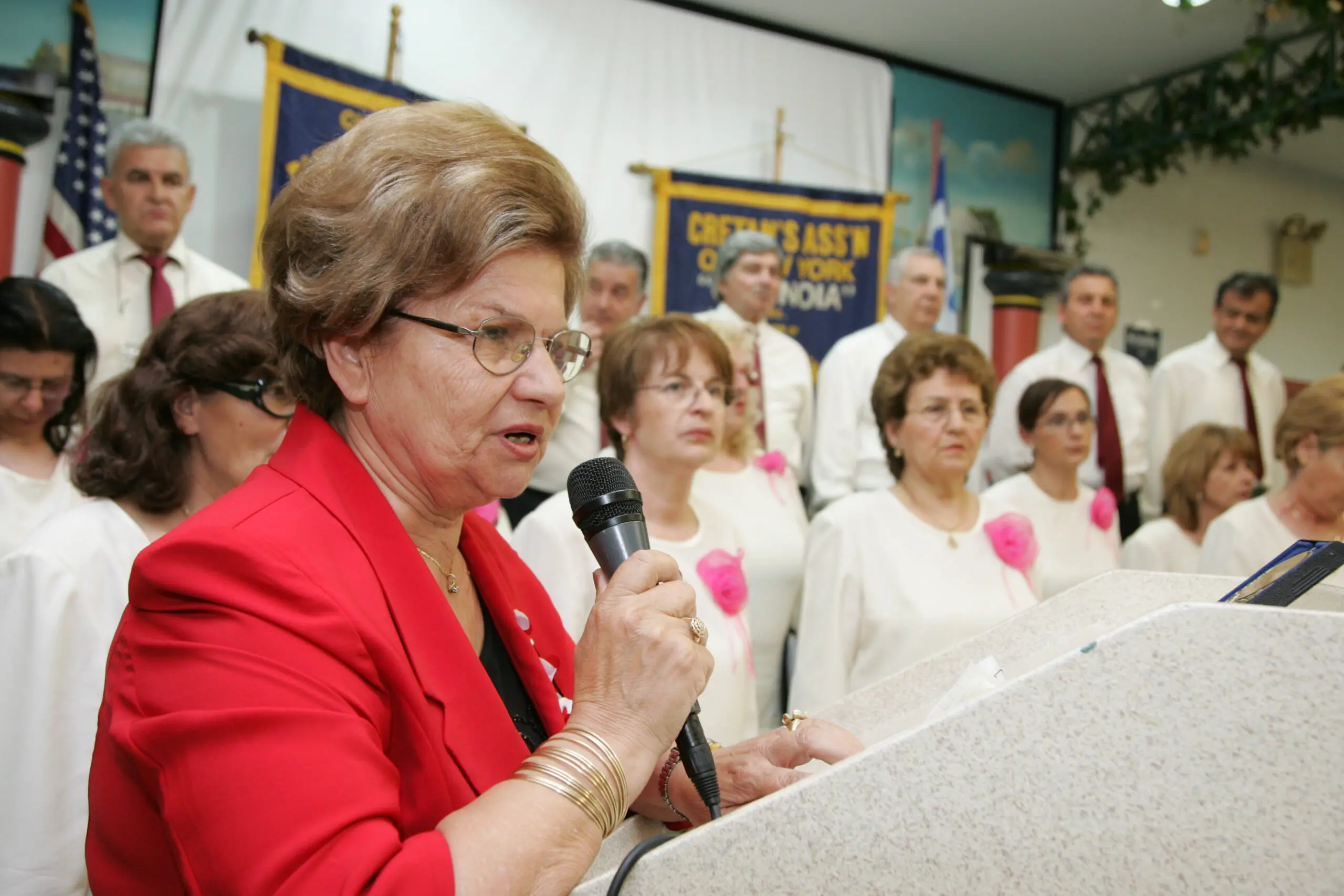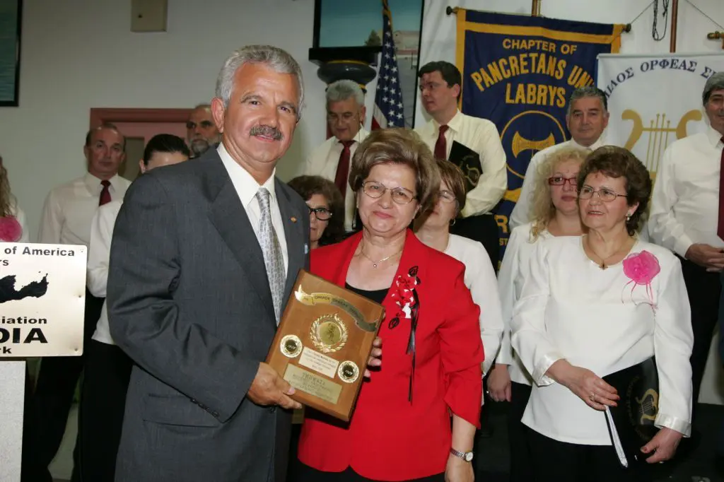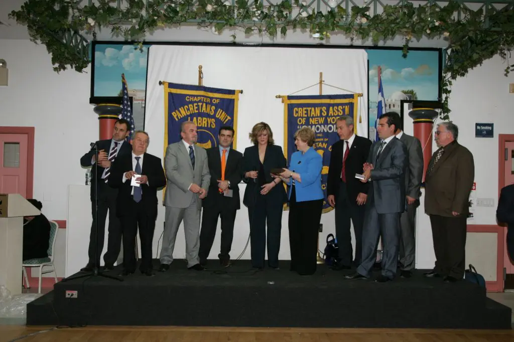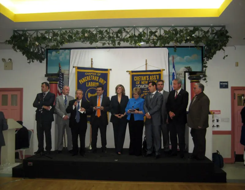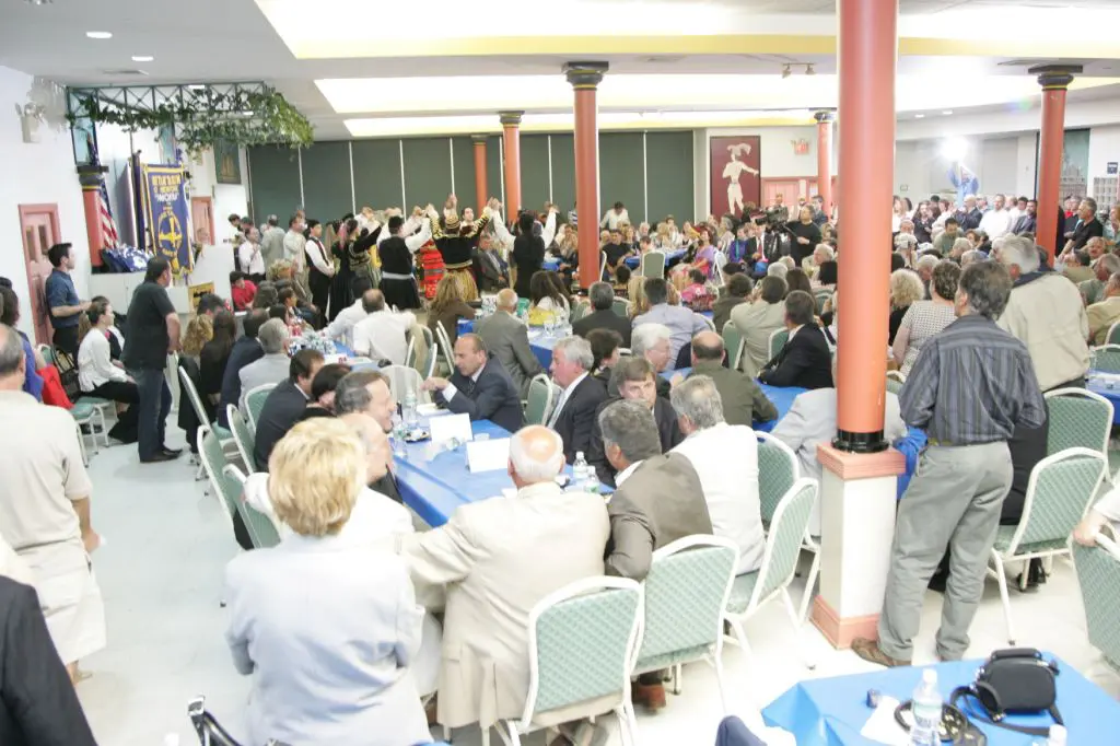 Event honoring Greek-American Olympians at a formal gathering.