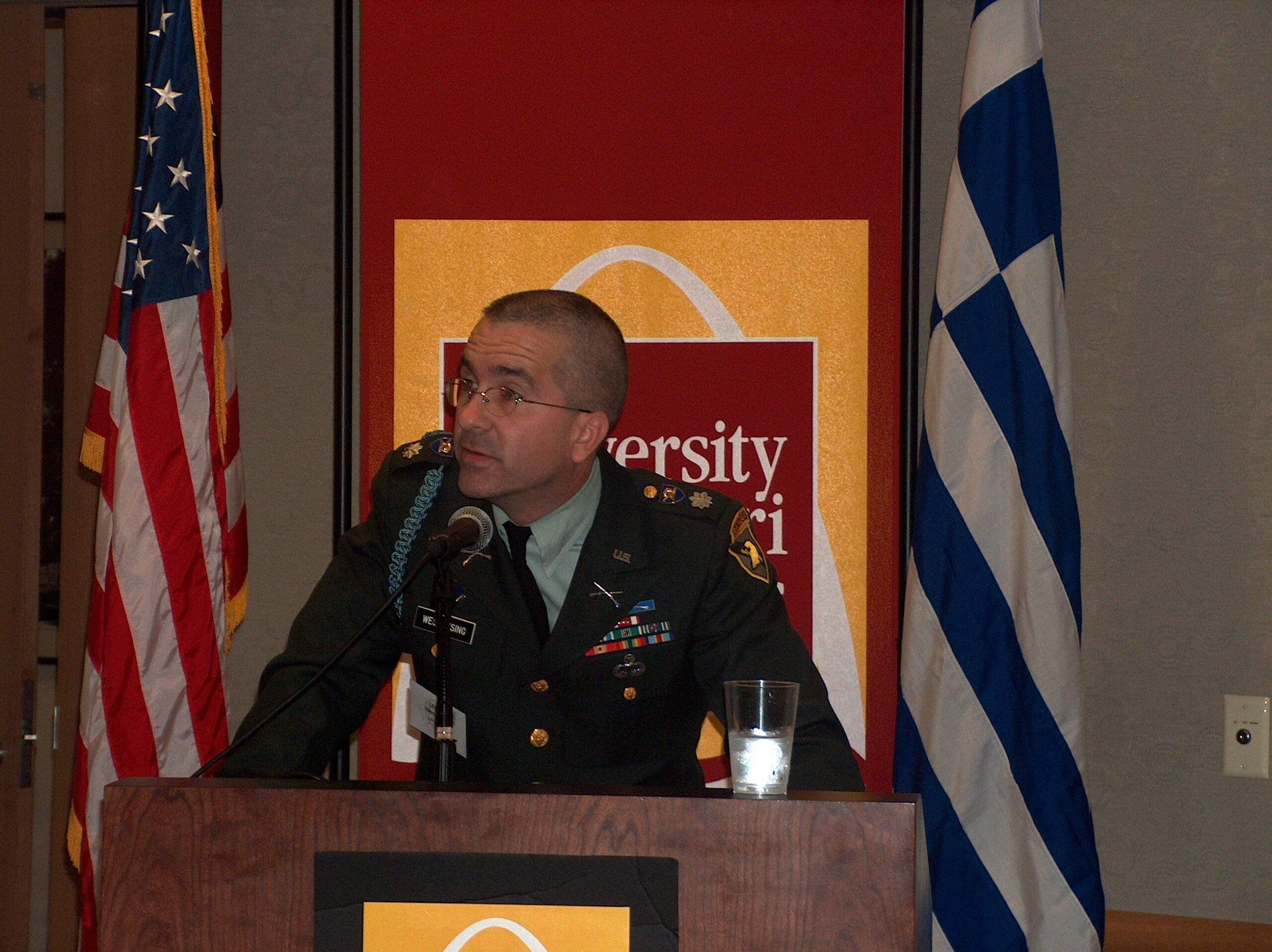 The Greek Ambassador to the US, Mr. George Savvaides, opened an unusual conference at the University of Missouri-St. Louis.  The conference was called “Achilles in Iraq” and its purpose was to provide a new perspective of current events in Iraq, as well as the Vietnam war, through the eyes of the Greeks.   The results were stunning.